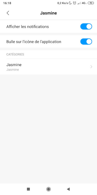 8. Toujours dans les paramètres de l'applications Jasmine, autorisez l'affichage des notifications
